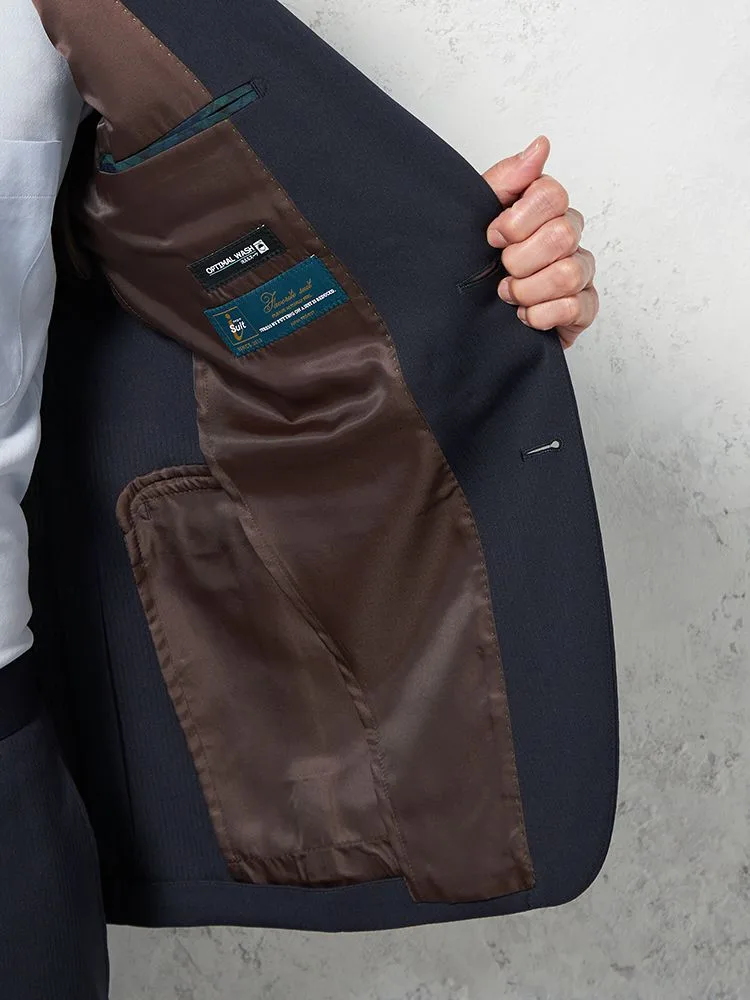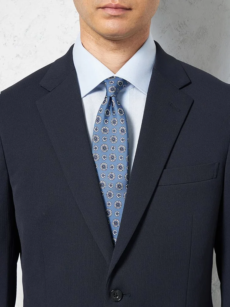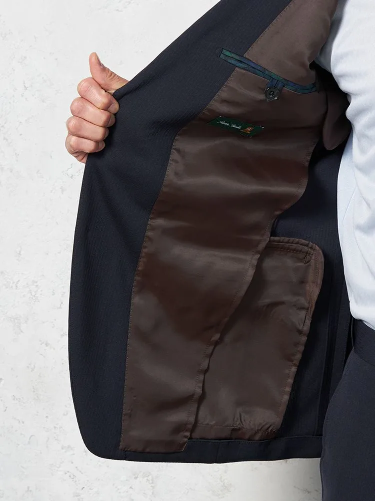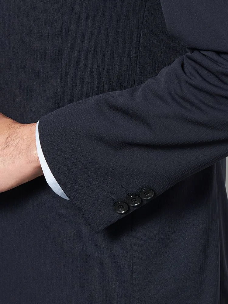 【上下ウォッシャブル】スーツ 2つボタン 軽量ニット シャドウストライプ リッケンバッカー 春夏(ネイビー)