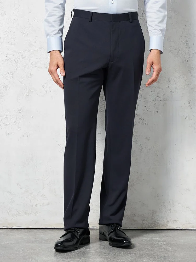 パンツの腰回りに生地の折り込みがなく、スッキリとしたシルエットを実現します。シンプルで洗練された印象を与え、すっきりとした着こなしが可能です。