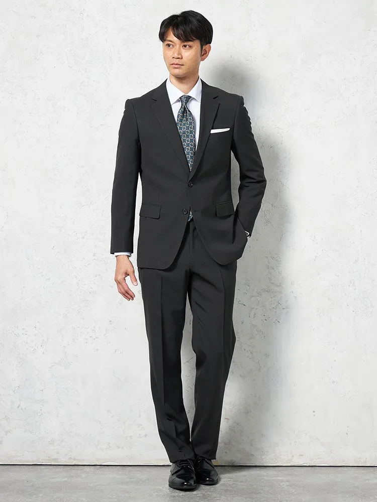 【CassetteCross】スーツ2つボタン上下ウォッシャブルニット素材無地nero秋冬