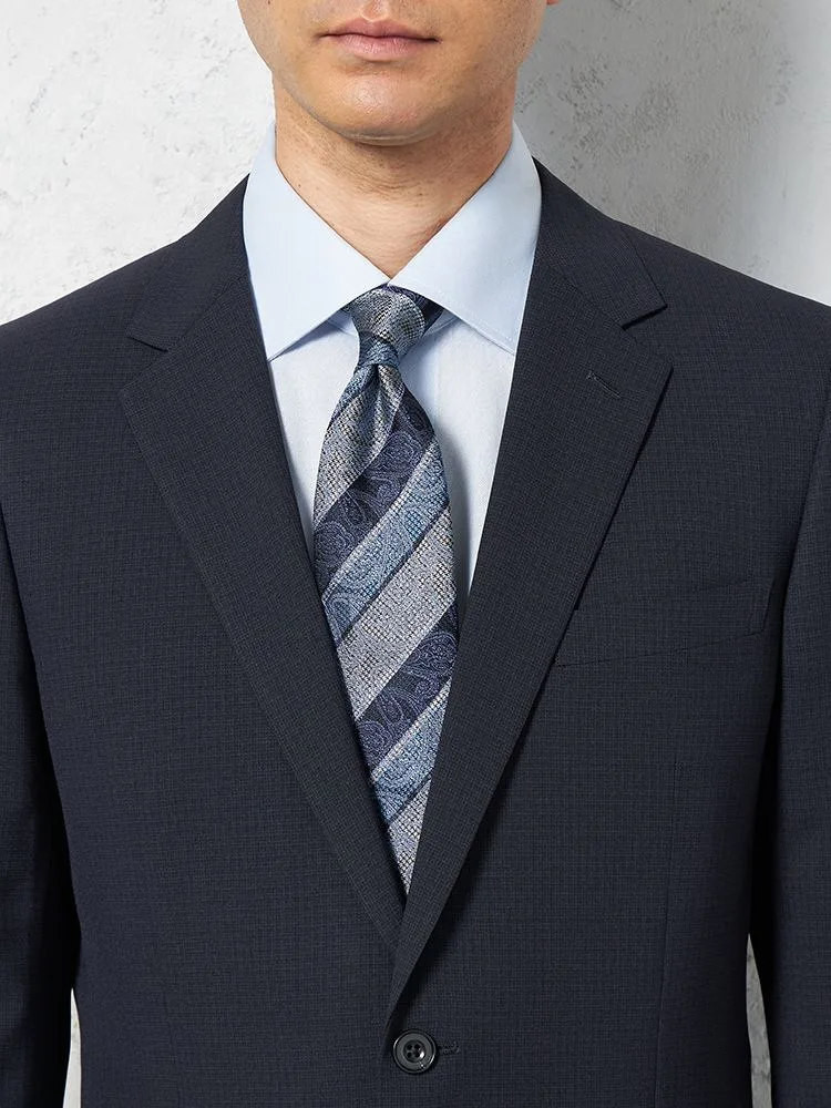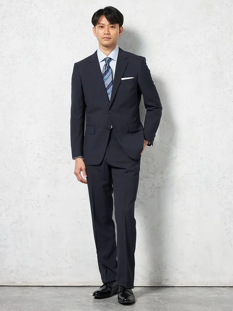 【上下ウォッシャブル】スリーピーススーツ2つボタン脚長スリムネイビーシャドウストライプNERO通年