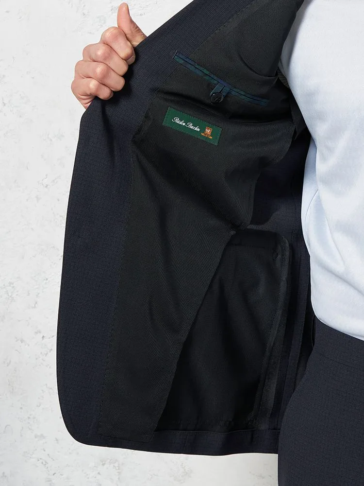 【上下ウォッシャブル】スーツ2つボタンツーパンツイージーケアネイビーマイクロチェックフュージョンクラブ