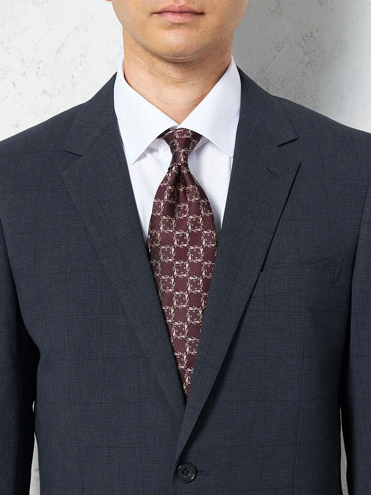 柄物ではありますが、落ち着いたカラーと細かいチェックがさりげなく定番のワードローブとして着用して頂けます。