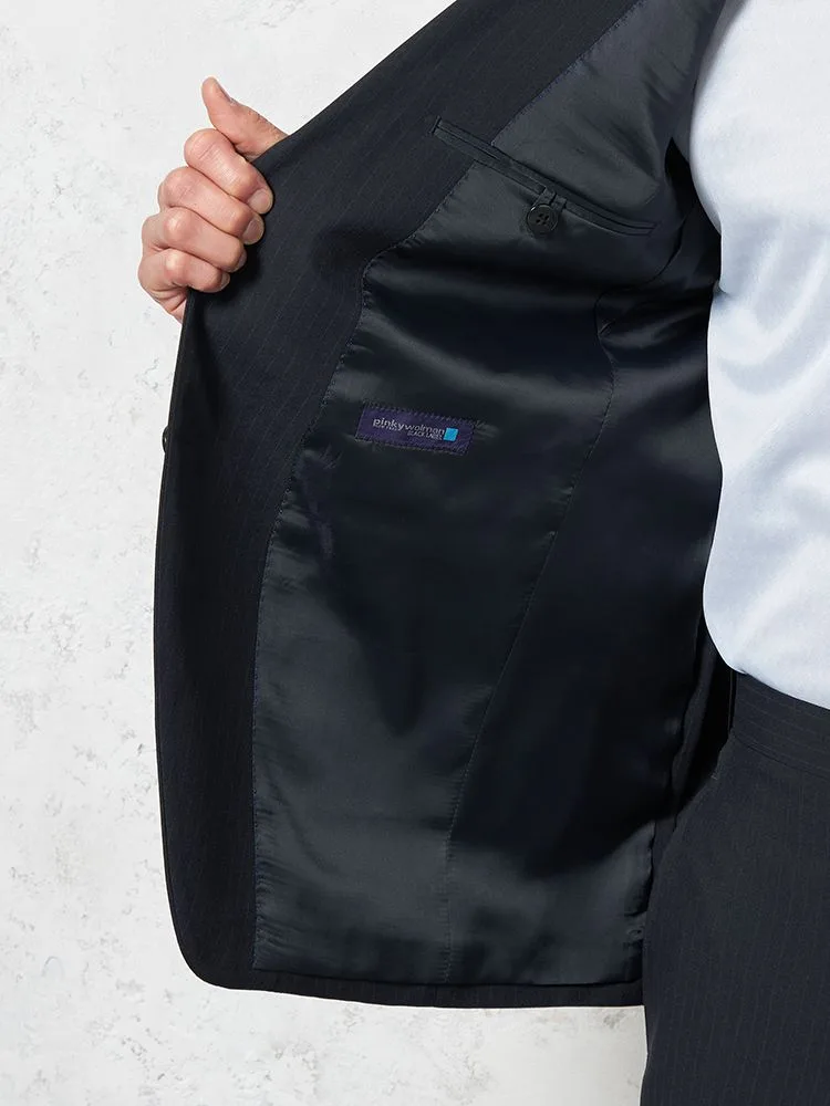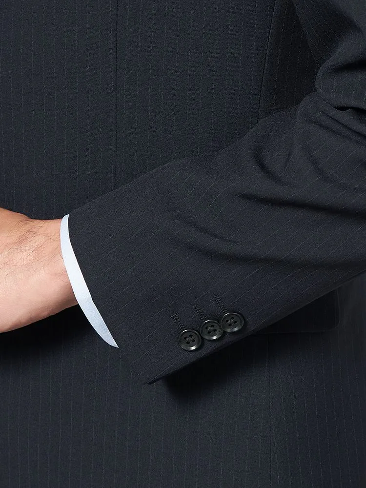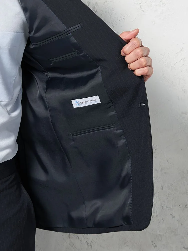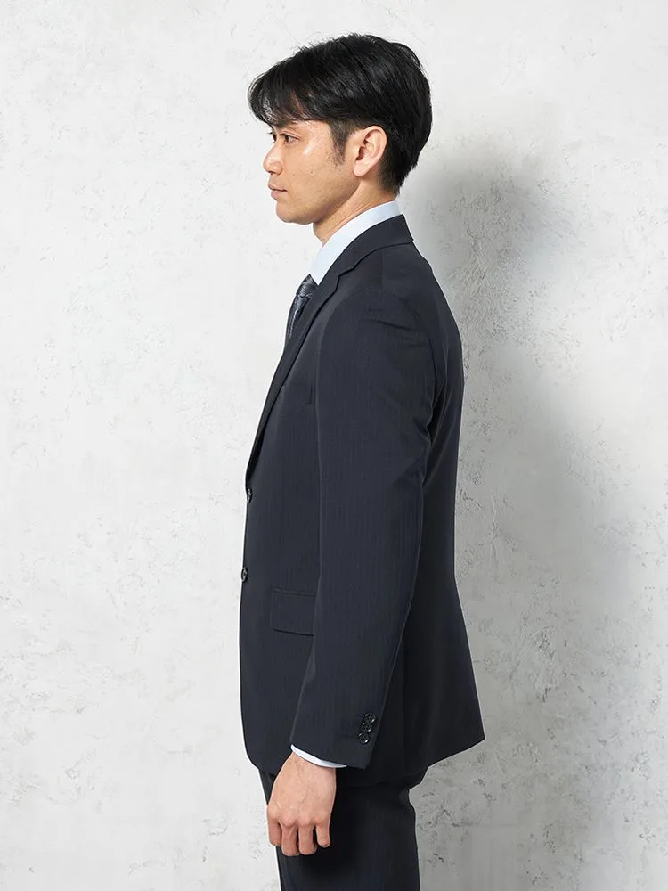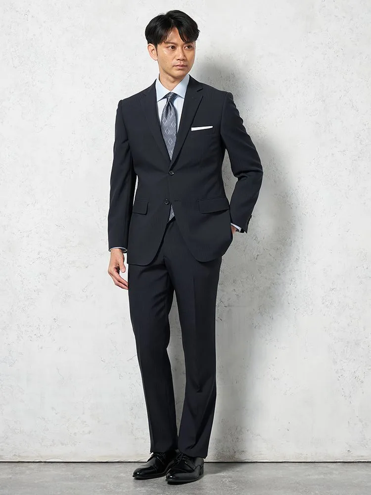 【上下ウォッシャブル】スリーピーススーツ2つボタン脚長スリムネイビーシャドウストライプNERO通年