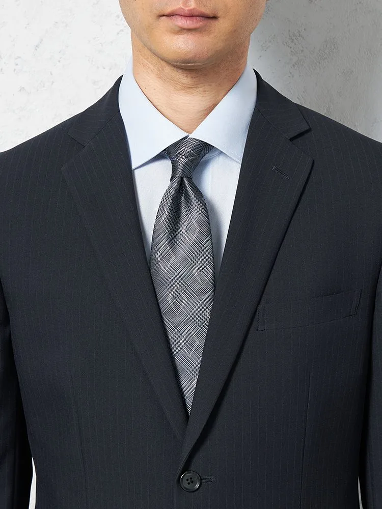 汎用性高くお使いいただける、ダークカラーのツーピーススーツ。