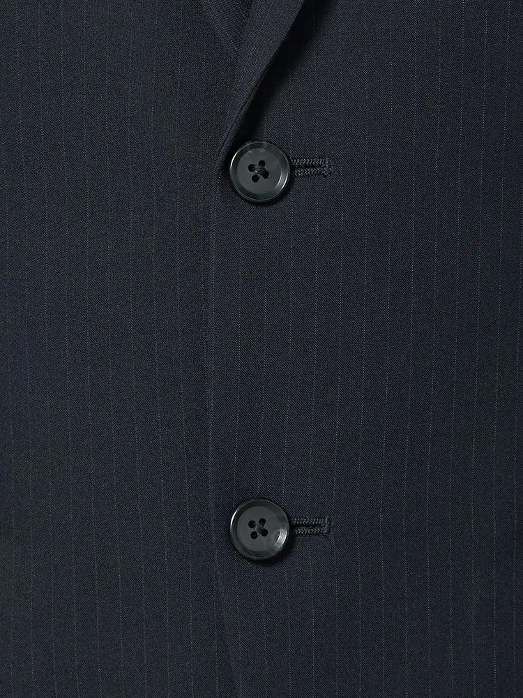【ウォッシャブル】スリーピーススーツ2つボタンウール混ノータックストライプnero