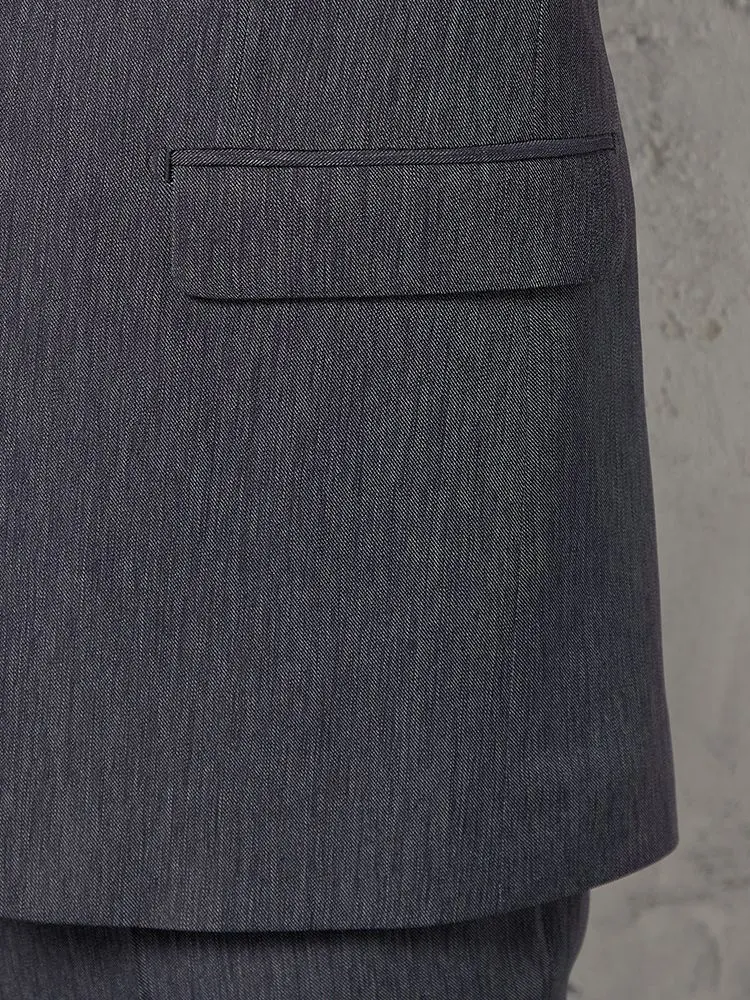切り込みが1本のセンターベントデザインです。細身でスッキリとしたシルエットが特徴で、快適な着心地を提供します