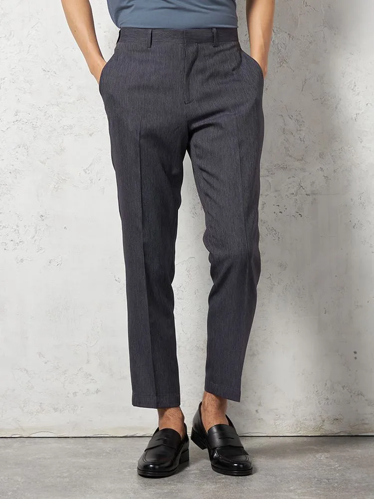 パンツはノータックのアンクル丈で、すっきりと着こなせます。
