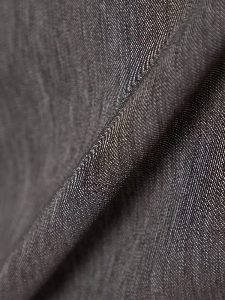 デニム生地で仕立てた、モダンな表情の2つボタンセットアップスーツ。