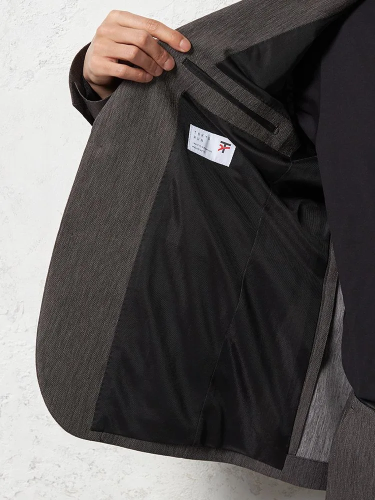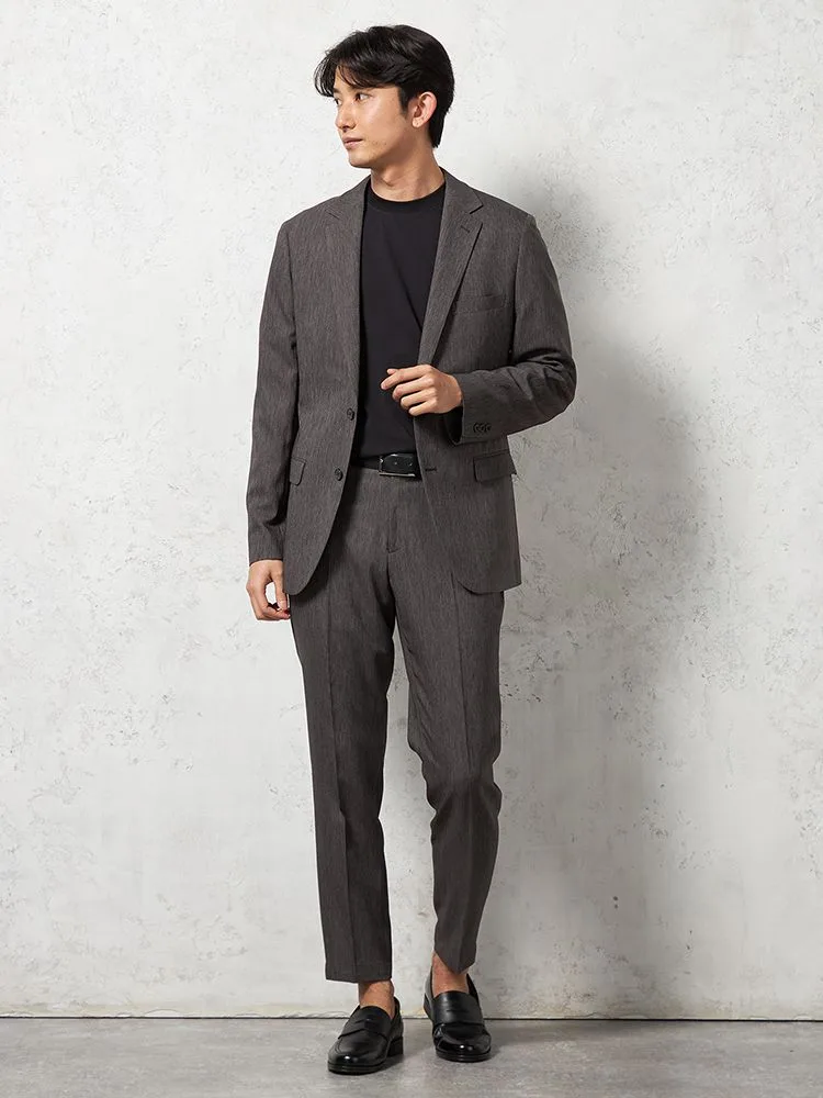 素材感で個性を出せるよう、ジャケット、パンツともにベーシックなデザインで仕上げられています。