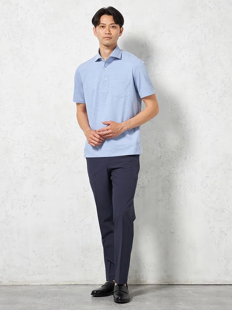 【吸湿冷感】完全ノーアイロン 半袖 アイポロシャツ カッタウェイ 無地 i-shirt 春夏(ネイビー)