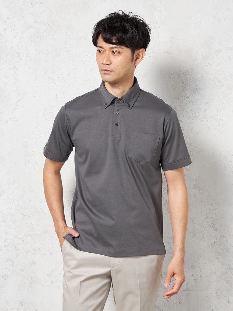 【接触冷感】半袖ビズポロシャツボタンダウン無地TOKYORUN春夏