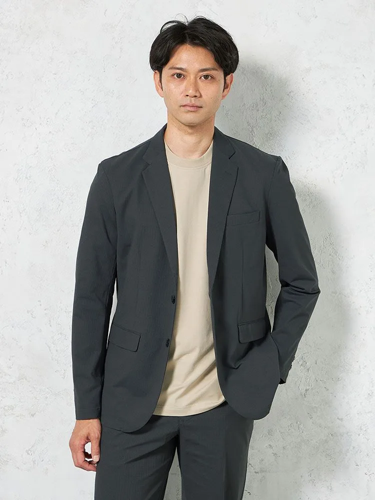 【サスビズxRENU】ジャケットブレザーウォッシャブル軽量ストレッチ無地春夏
