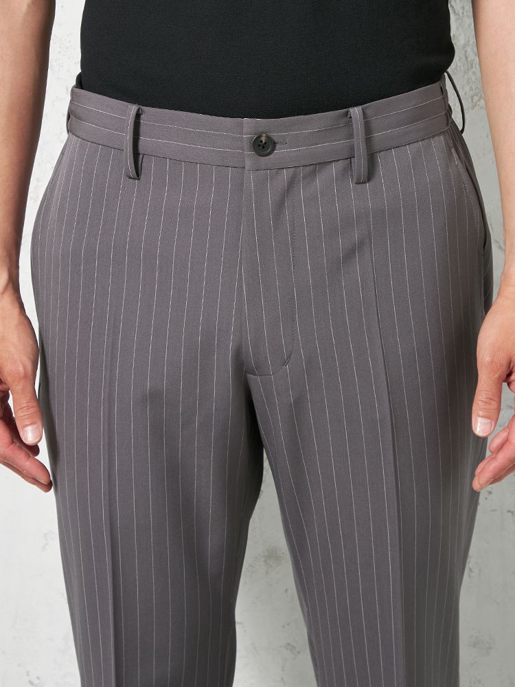 【即納】スーツ2つボタン【WEB限定】4WAYストレッチストライプチャコールグレー通年