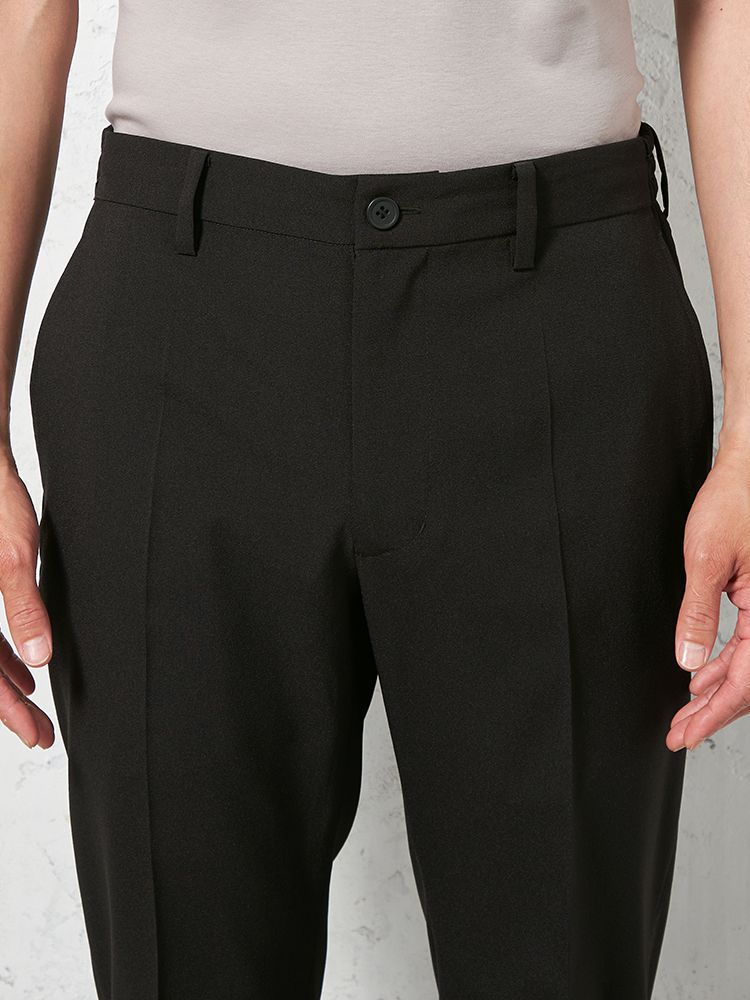 左右に1本ずつ生地の折り込みがあり、標準的なシルエットでシーンを選ばず上品なシルエットが楽しめます。