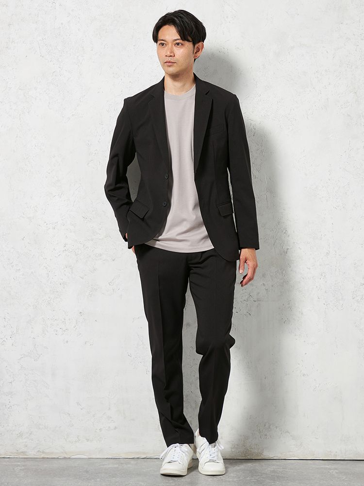 上下セットでコーディネートが簡単に決まるアイテム。シンプルでスタイリッシュな印象を与えます。