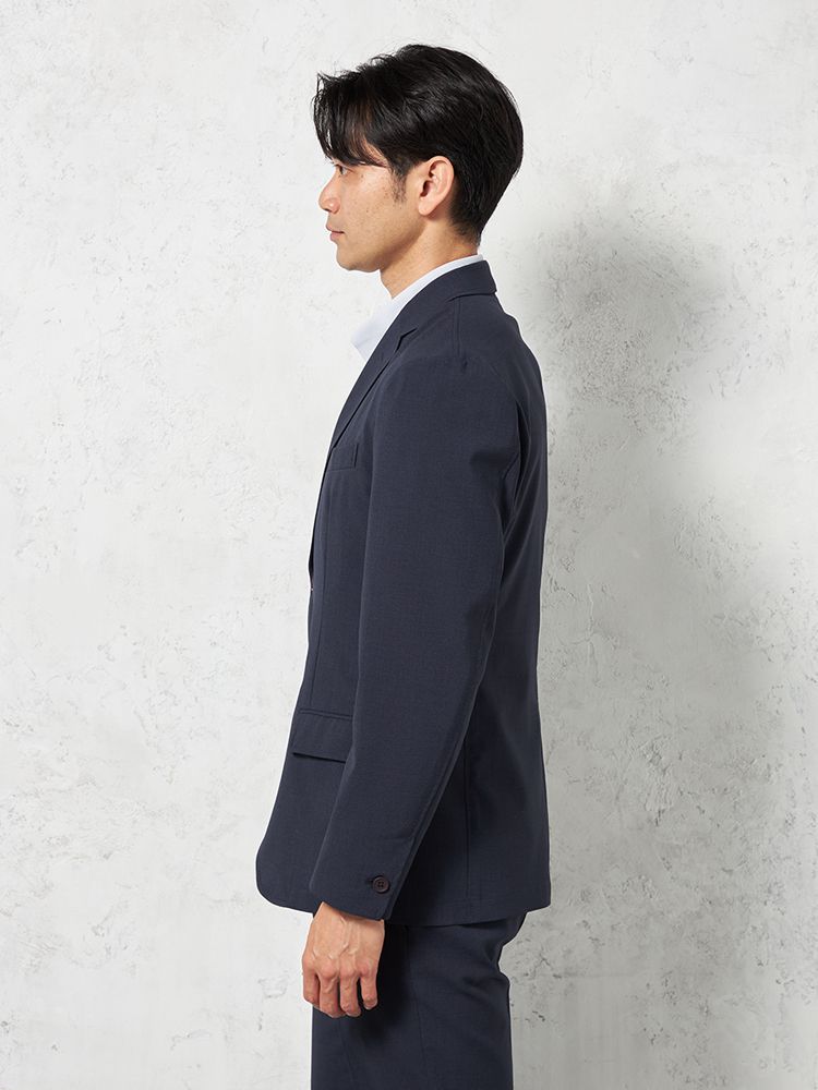 切り込みが1本のセンターベントデザインです。細身でスッキリとしたシルエットが特徴で、快適な着心地を提供します