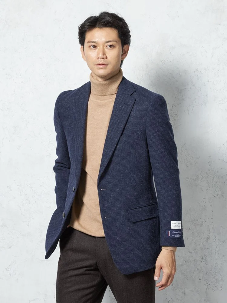 【ウール100%】ジャケット2つボタン尾州素材小柄STOVEL&MASON秋冬
