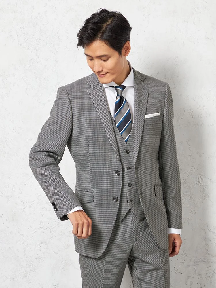 【即納】スリーピーススーツ2つボタン【WEB限定】上下ウォッシャブル小柄グレー秋冬