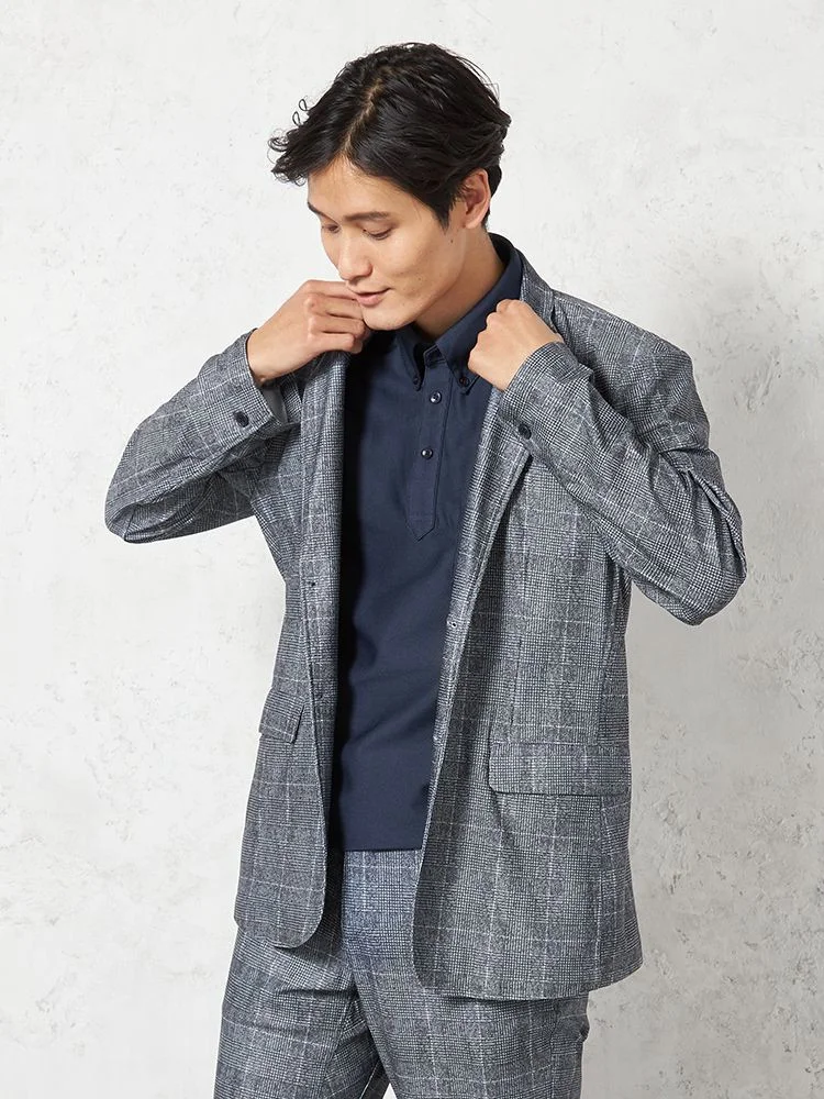 【CassetteCross】スリーピーススーツ2つボタン上下ウォッシャブルニット素材千鳥格子nero秋冬