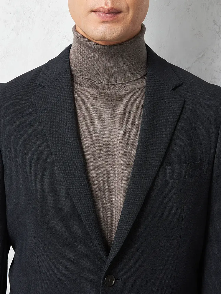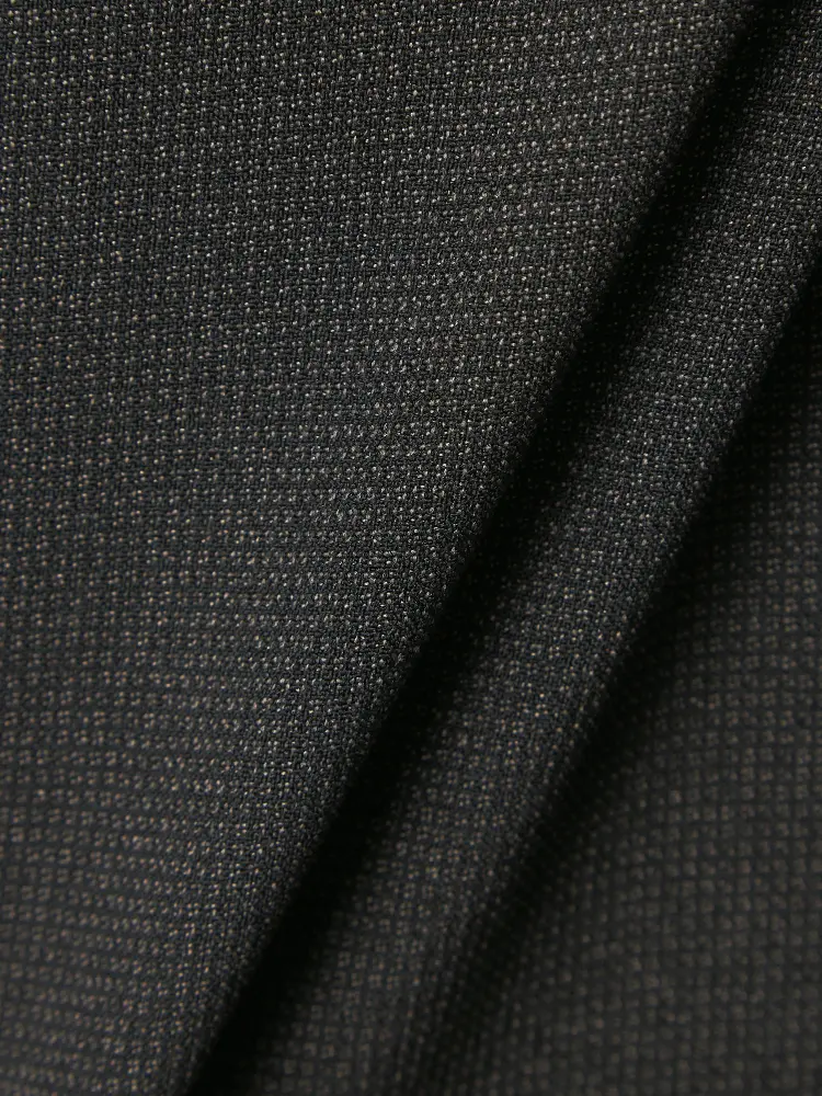 ウールタッチのポリエステル素材は、優れたストレッチ性と防シワ性が特徴です。