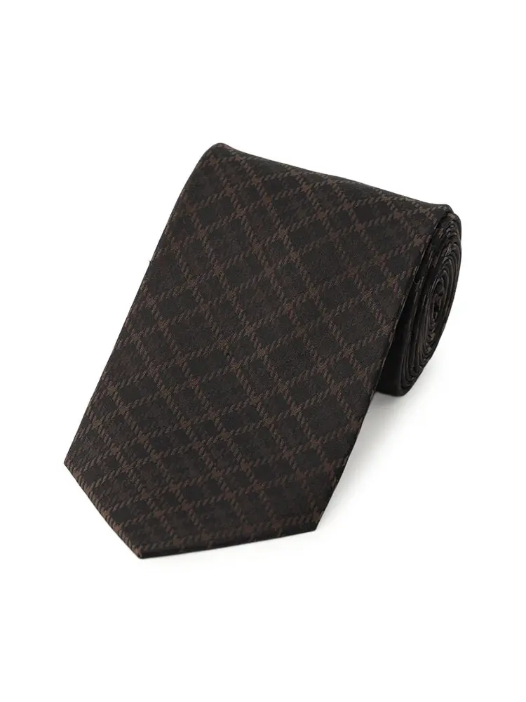 深みのあるカラーを基調とした、洗練されたチェック柄ネクタイ。