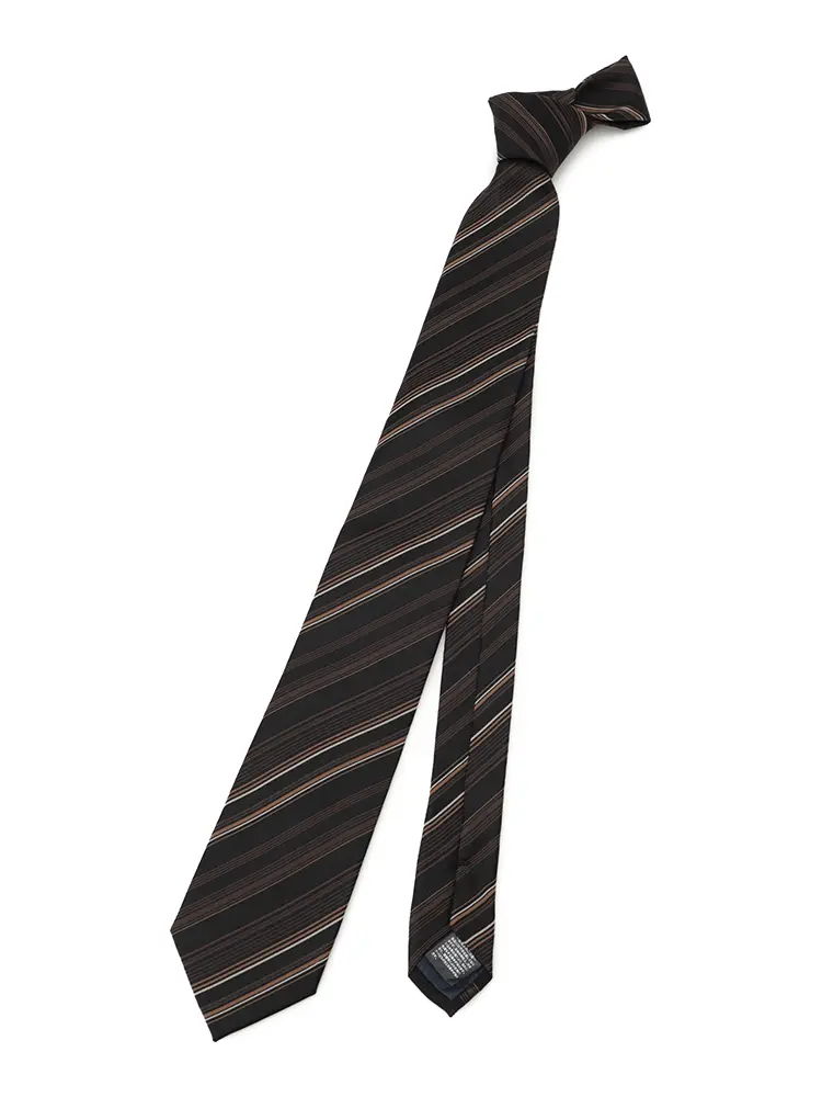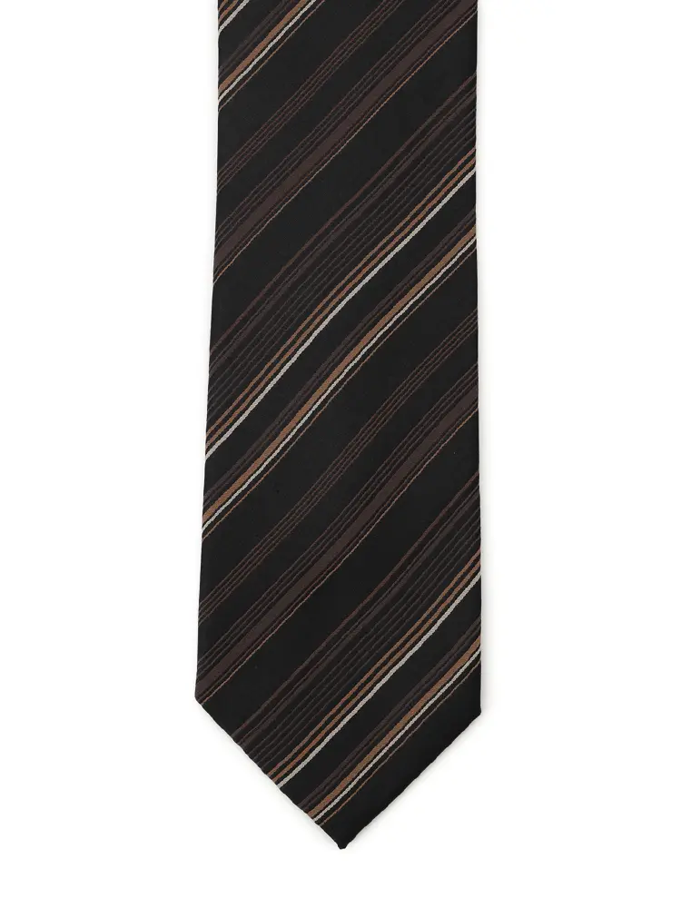 【リスペクトネロ】シルクネクタイ ストライプ 7.5cm巾 秋冬(ブラウン)