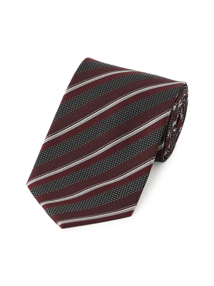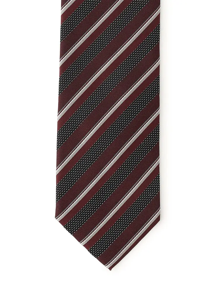 【リスペクトネロ】シルクネクタイ ストライプ 7.5cm巾 秋冬(ワイン)