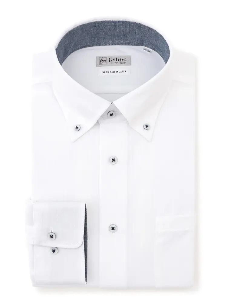 • ホワイト 【アイシャツ】 長袖Yシャツ ボタンダウン チェック 抗菌加工 吸汗速乾 形態安定 通年 | はるやま公式通販