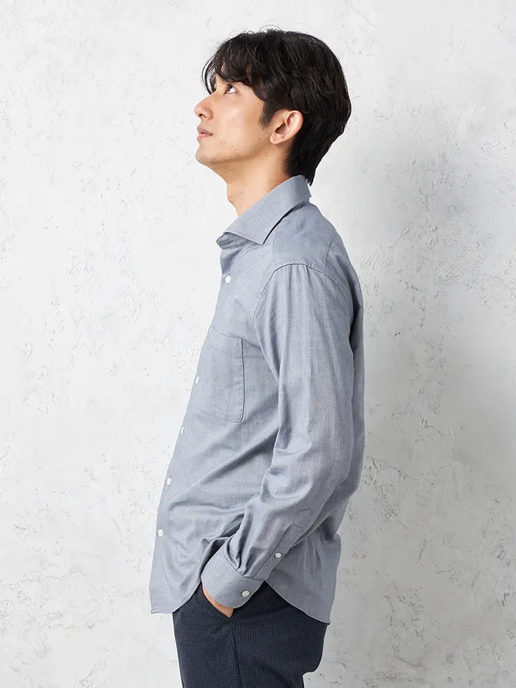だぼつきのないベーシックなシルエットが使いやすく、カジュアルからきれいめまで幅広いスタイリングに活躍してくれる1枚です。