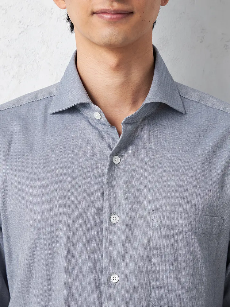 【RUCKENBACCHAR】 へリンボン ホリゾンタルカラー ビジカジシャツ 長袖Yシャツ 通年(オフホワイト)