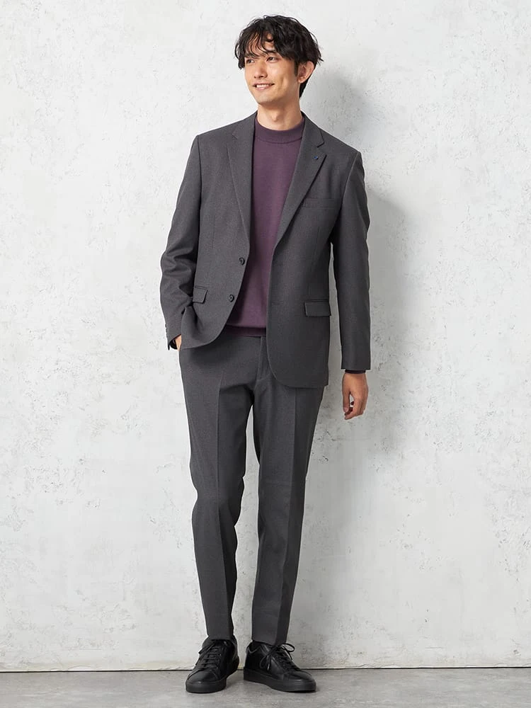 ポリエステル100%素材はシワになりにくく、長時間座ったままの会議の日にもおすすめ。