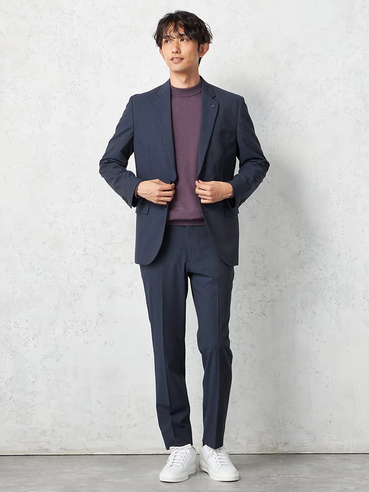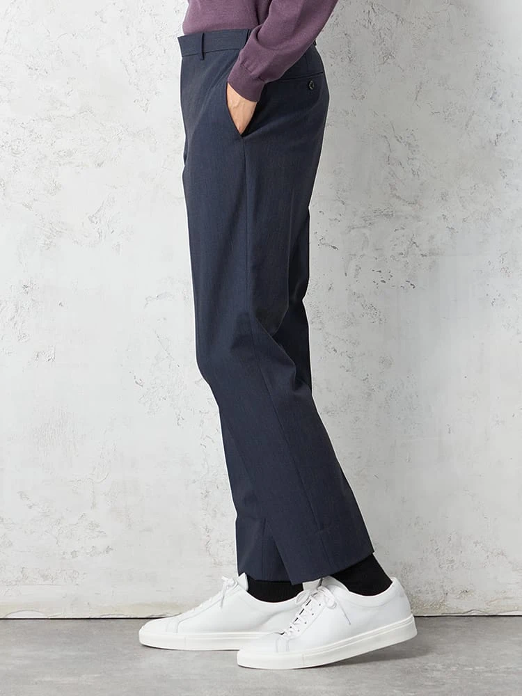 裾に向かてテーパードさせたすっきりシルエットで、センタークリースが効いています。