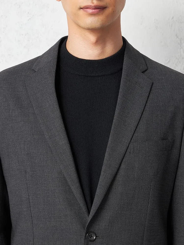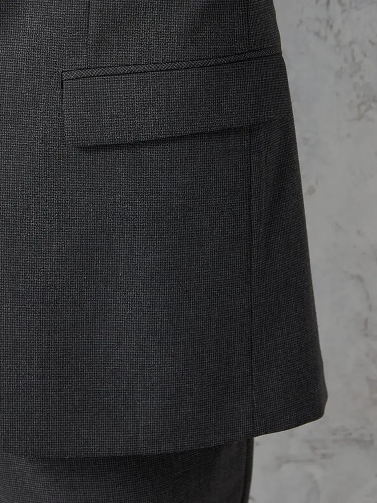 シックなグレーの、ハウンドトゥースチェック柄2つボタンテーラードジャケットです。