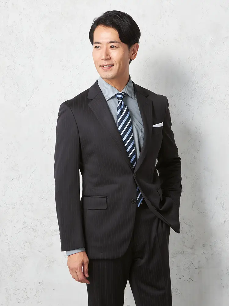 【即納】【WEB限定】スーツ2つボタンシャドウストライプ上下ウォッシャブル3シーズン対応