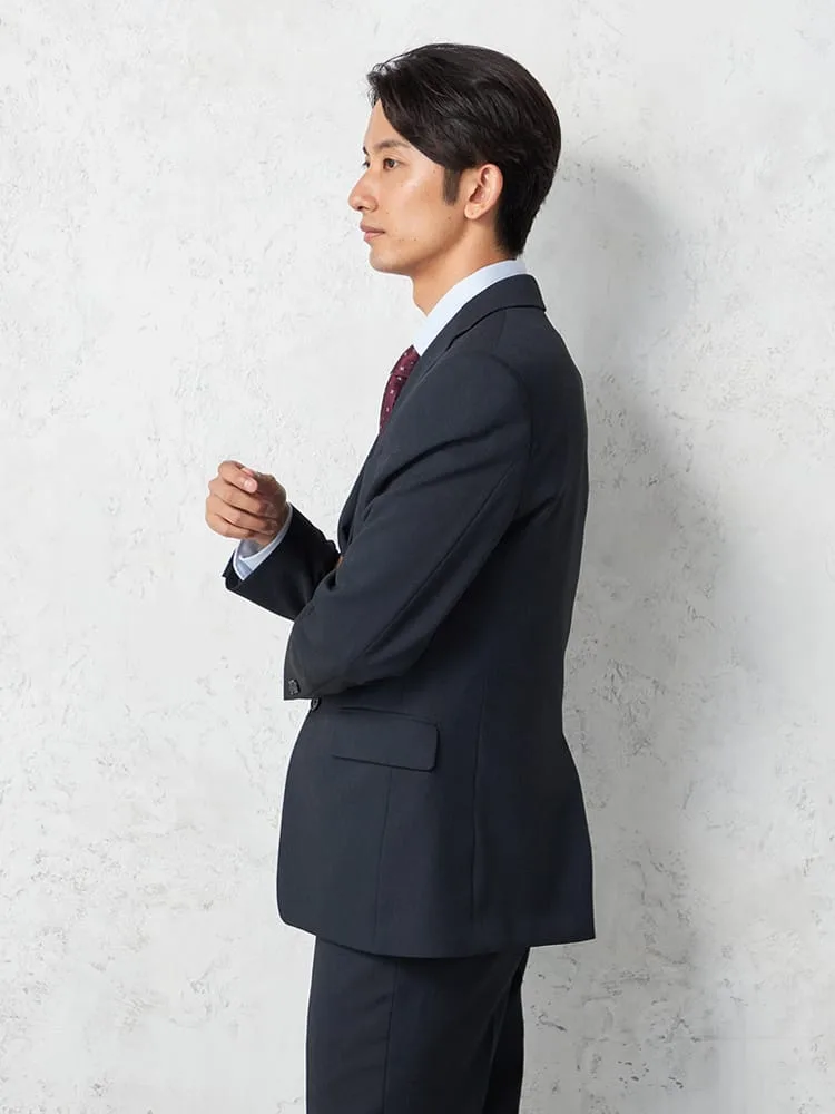 抜群のストレッチ性と嬉しいウォッシャブル機能付きのスーツは会議からテレワークまであらゆるシーンで活躍します。