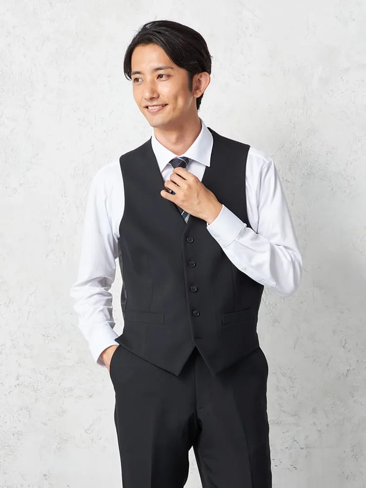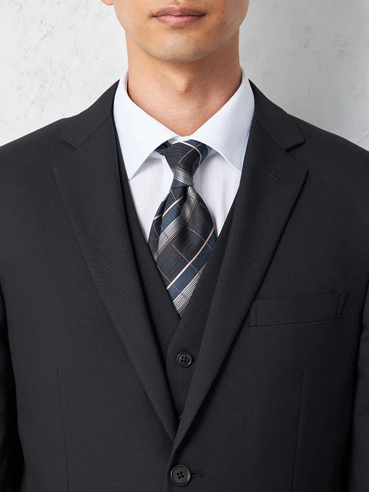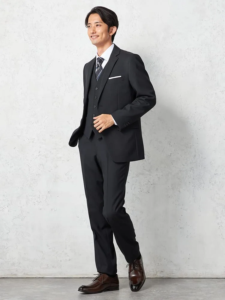 【即納】スリーピーススーツ2つボタン【WEB限定】上下ウォッシャブル小柄ブラック秋冬