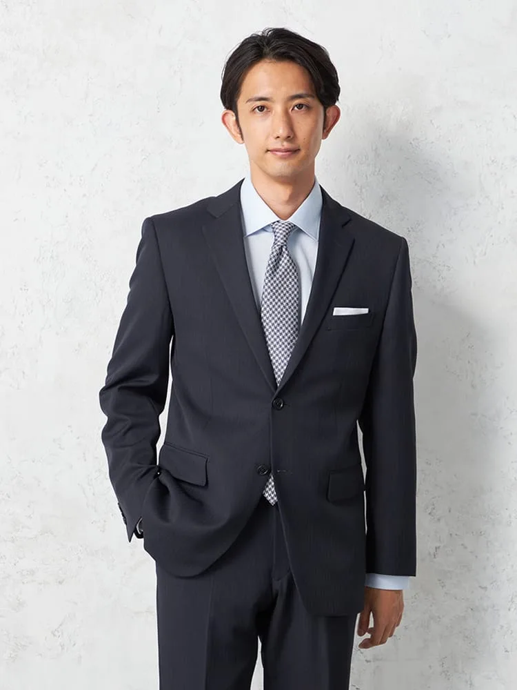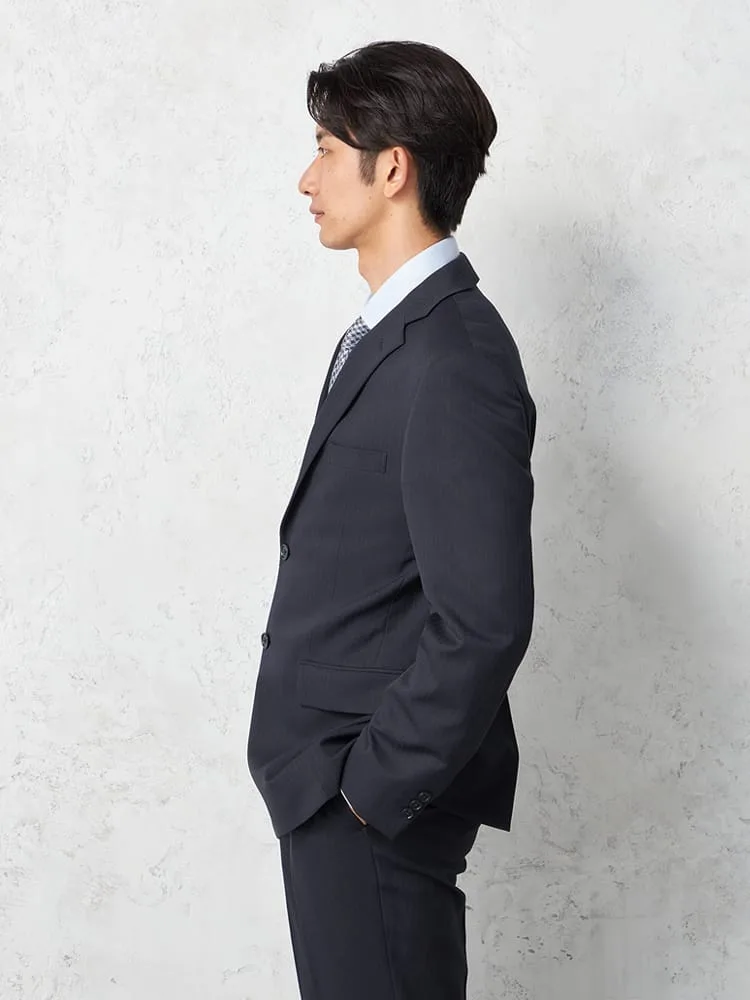 抜群のストレッチ性と嬉しいウォッシャブル機能付きのスーツは会議からテレワークまであらゆるシーンで活躍します。