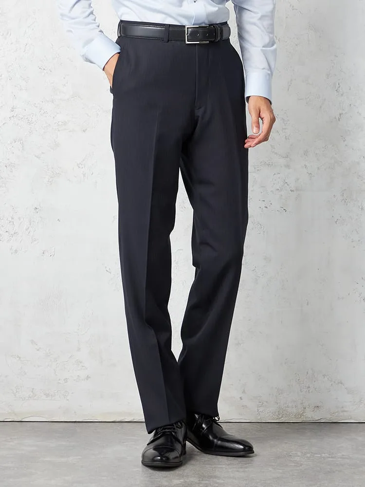 パンツの腰回りに生地の折り込みがなく、スッキリとしたシルエットを実現します。シンプルで洗練された印象を与え、すっきりとした着こなしが可能です。