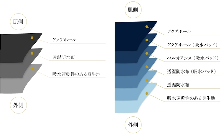 パンツ本体の生地にも、高い吸水性能を誇る独自素材を採用し
