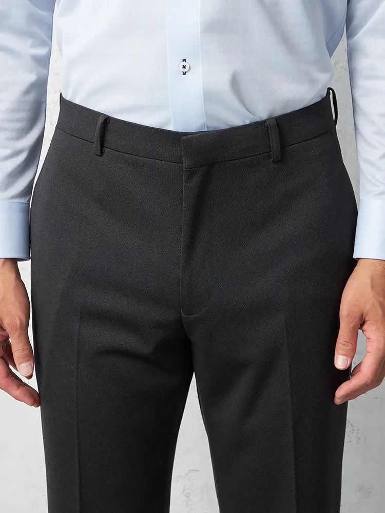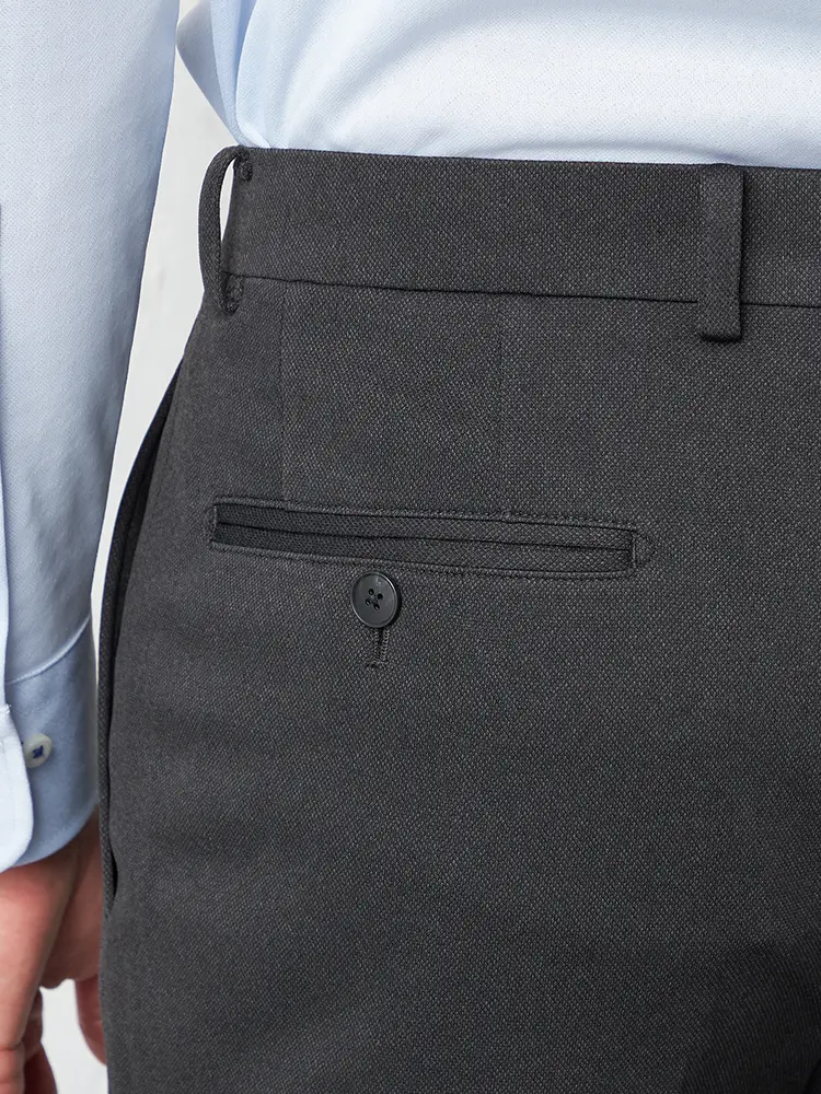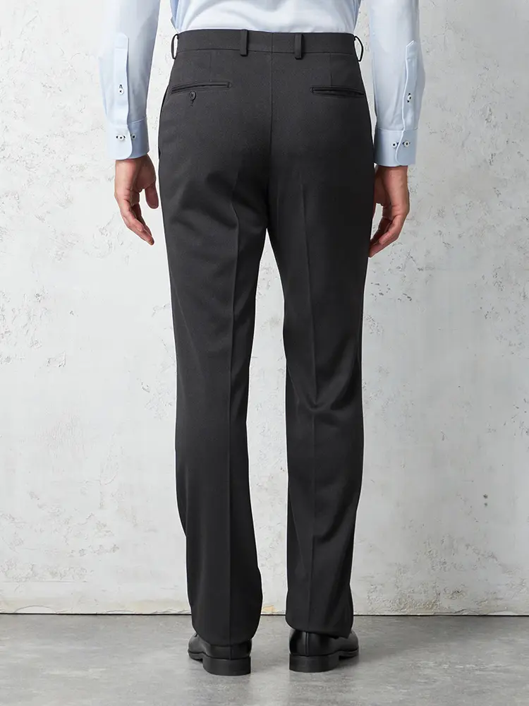 明るすぎず暗すぎず、ほどよいトーンのスマートな印象に穿きこなせるニット素材のウォッシャブル仕様のパンツ。
