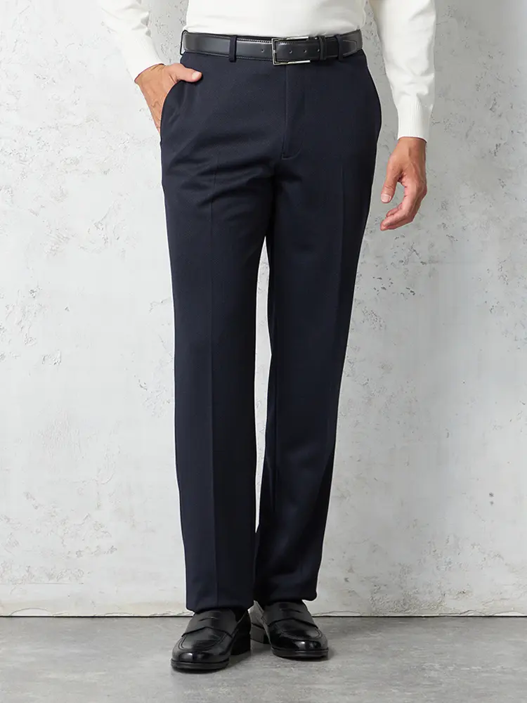 【セットアップ対応】パンツ紺無地ウォッシャブルノータック通年