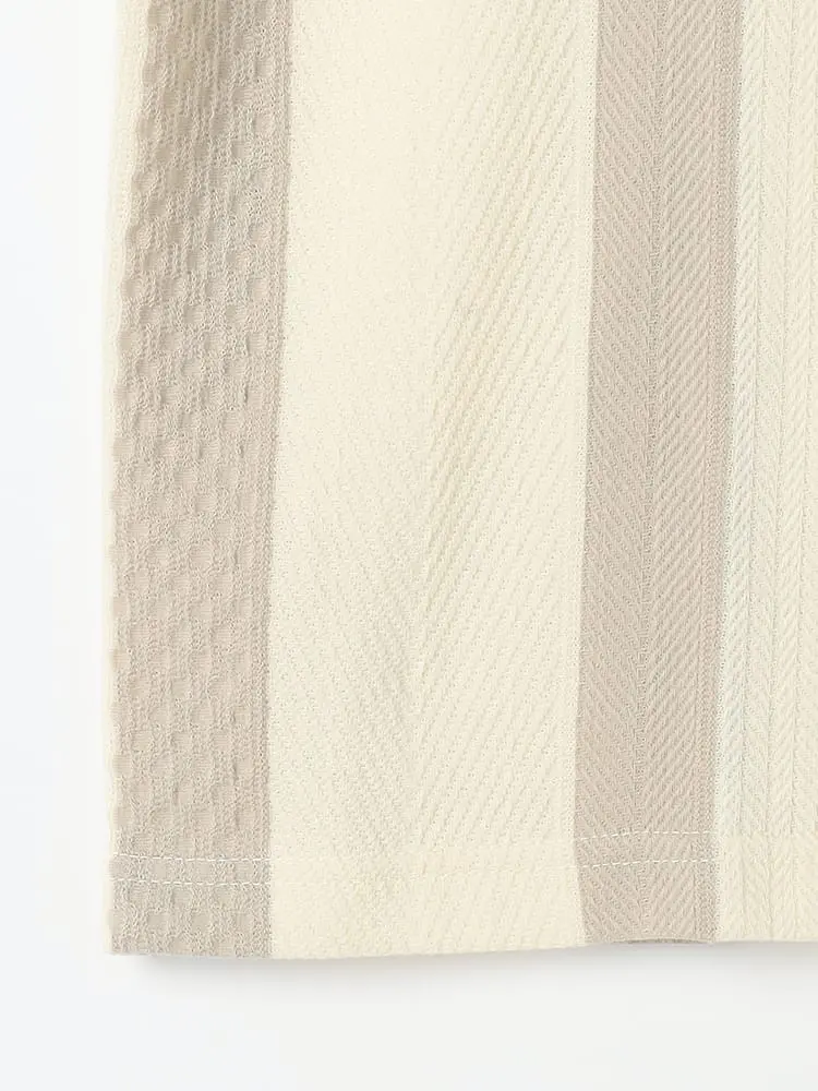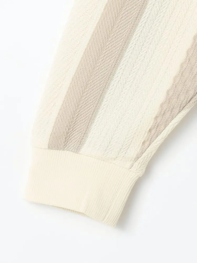 【カンサイ・ヤマモト】ストライプトレーナー カジュアルインナー 秋冬(ホワイト)