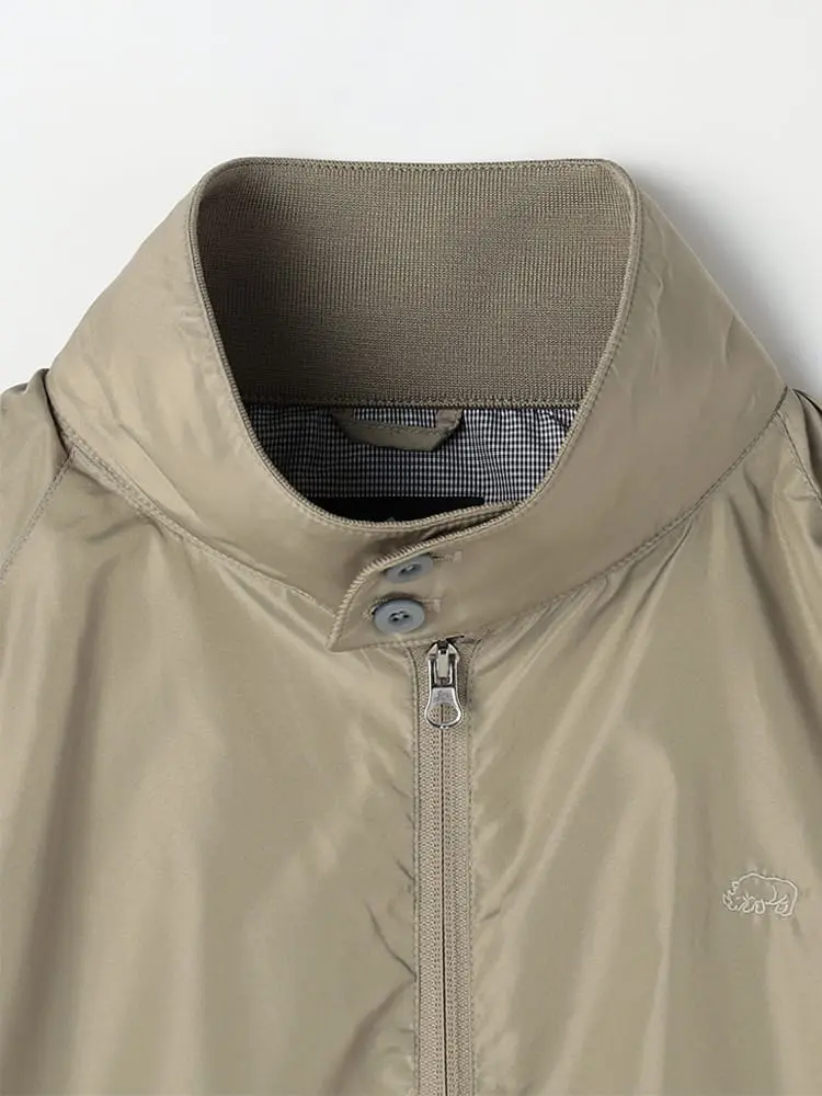胸元のサイのマークをワンポイントにしたシンプルなジップブルゾン。