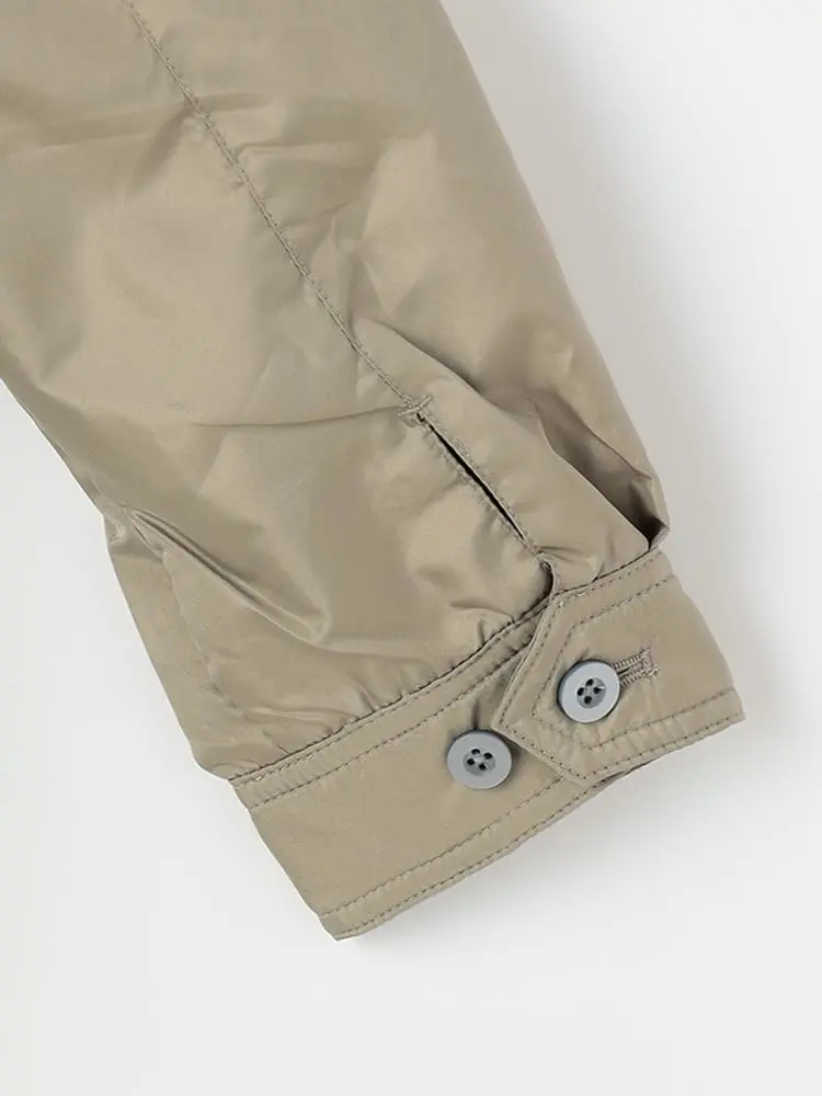 ボタンを留めることでスタンドカラーのアレンジも楽しめます。