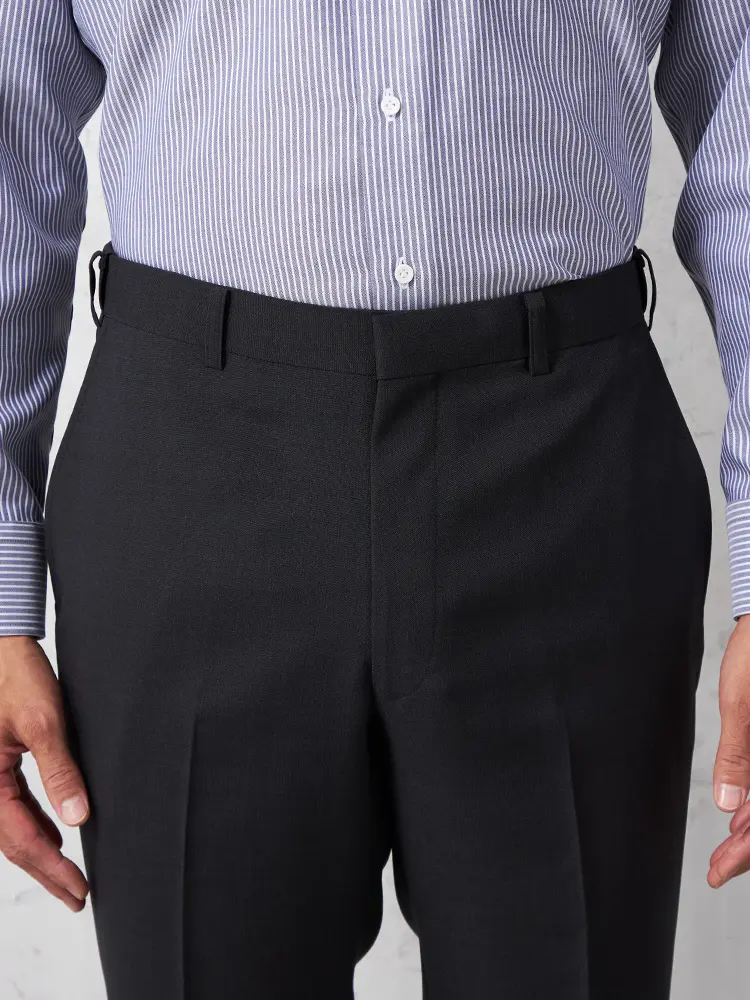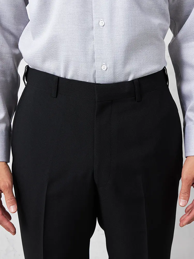 ノータックのすっきりとした細身のシルエットでスタイリッシュな着こなしがかないます。