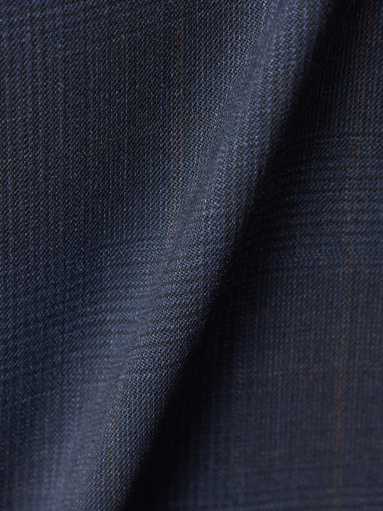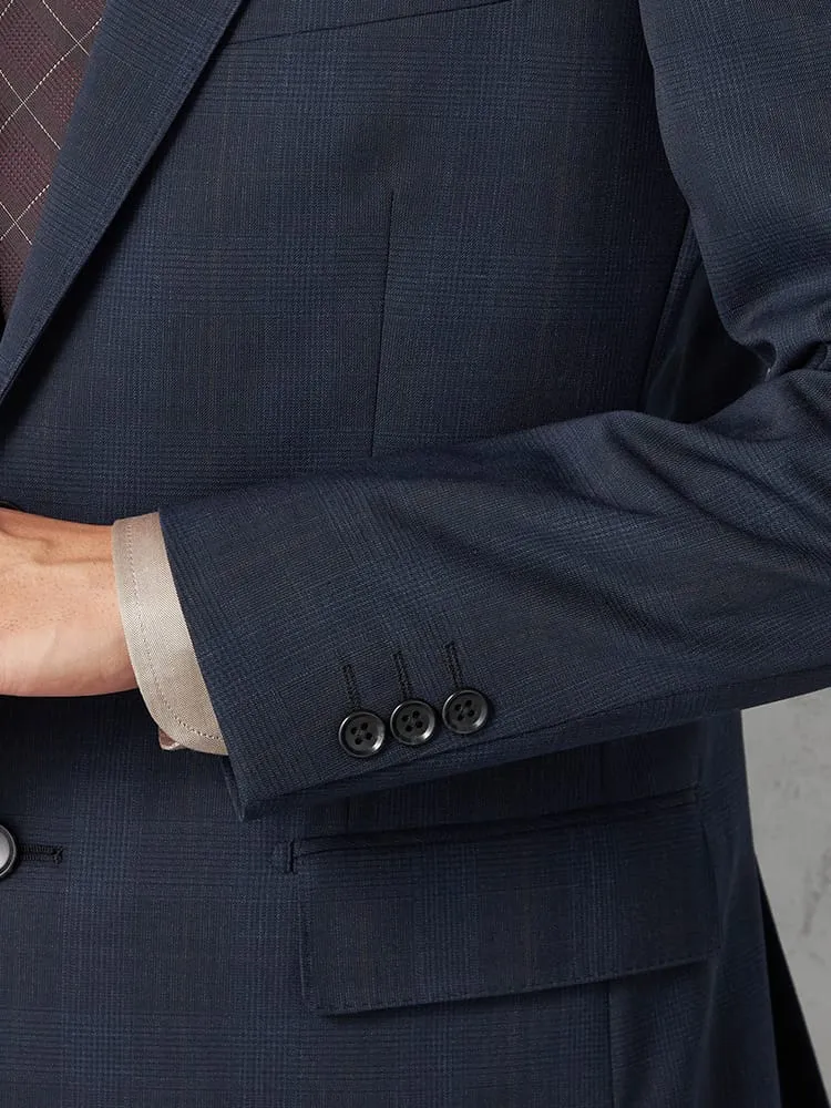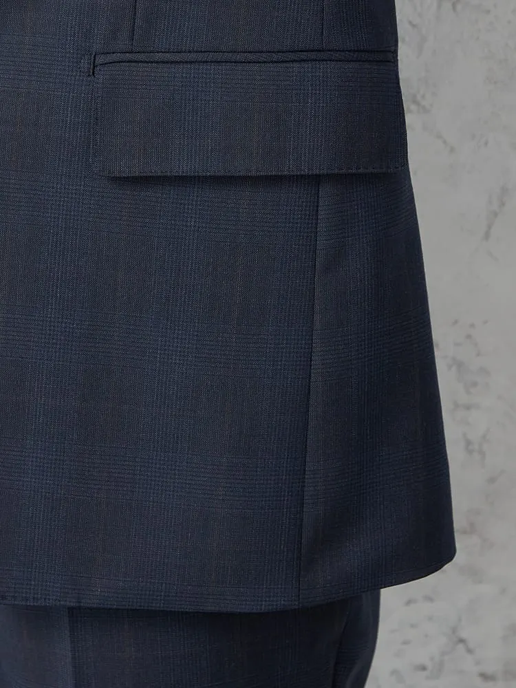 ネイビーを基調とした、チェック柄の2つボタンテーラードジャケットです。