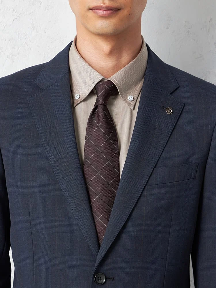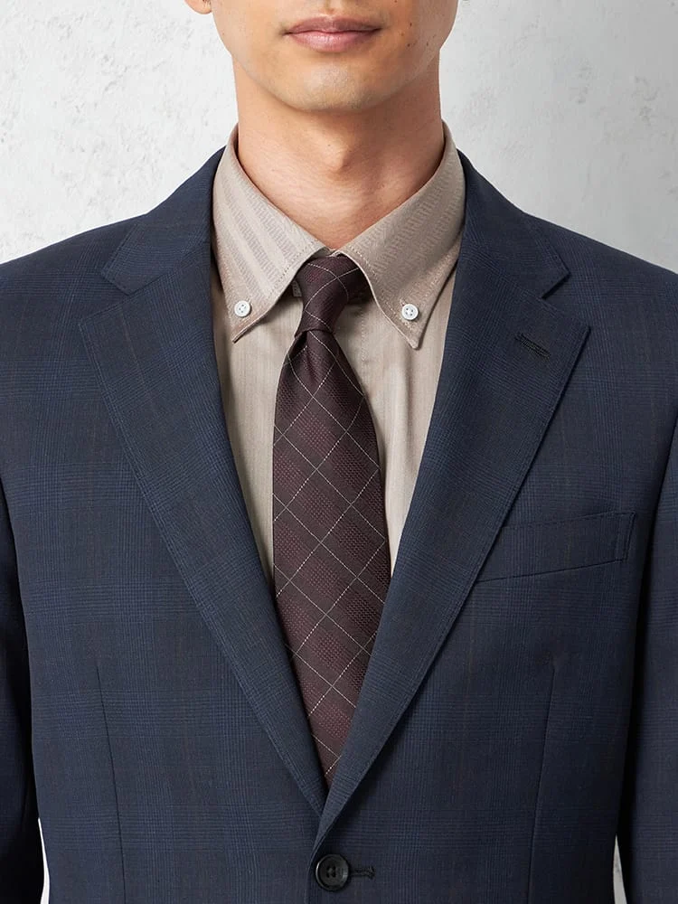 ボタンダウンシャツや同じくチェック柄のタイなどを組み合わせると、よりトラッドなムードが高まります。