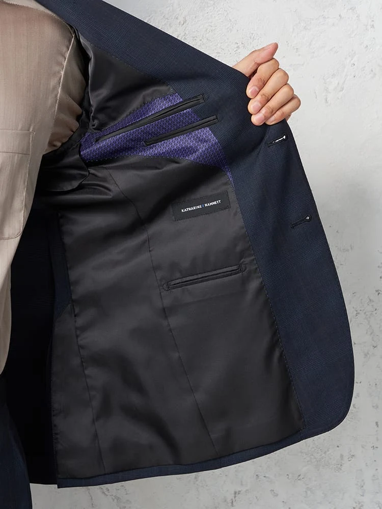 【KATHARINEEHAMNETT-キャサリン・イー・ハムネット-】スーツ2つボタン上下ウォッシャブルサスティナブルウールネイビーチェック秋冬