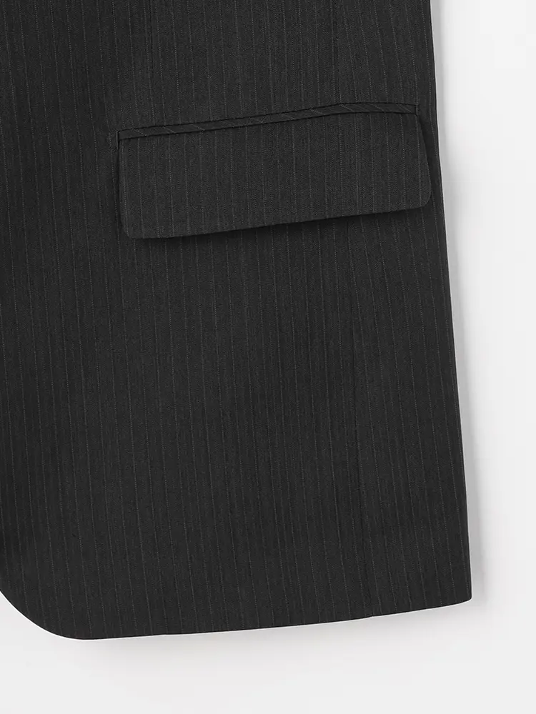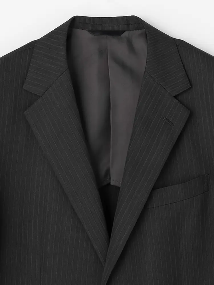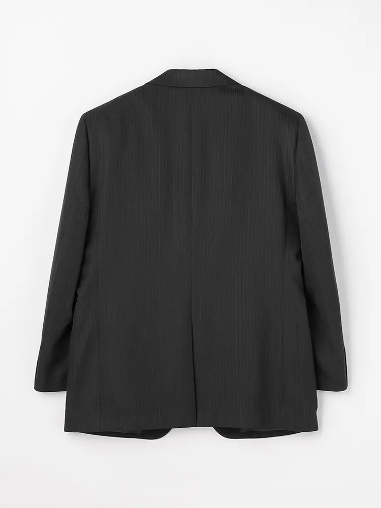 ジャケットは背抜き仕立てで、センターベントを入れた動きやすいデザイン。