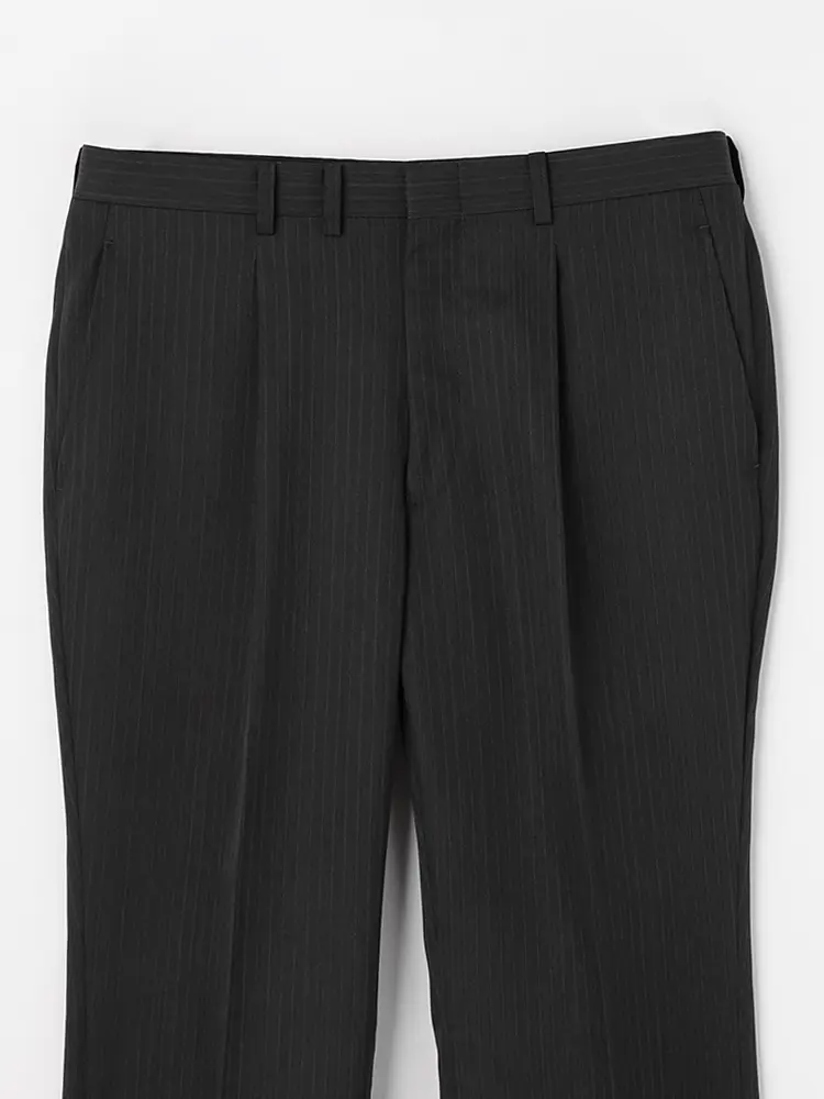 パンツはワンタック入りで立体感を出し、腰まわりにゆとりを持たせています。